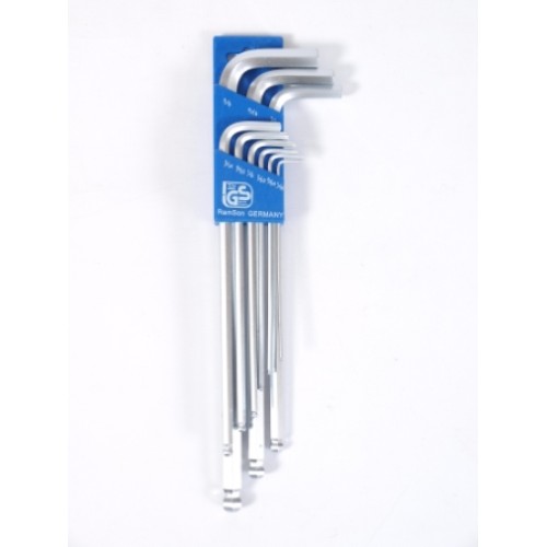 Deze set bestaat uit 9 lange inbus sleutels. Hierdoor kun je meer kracht zetten of beter bij een moeilijk bereikbare inbus bout. Aan de lange kant hebben de sleutels een rond einde. Hierdoor is het mogelijk inbus uit te draaien onder een hoek van 30 graden.