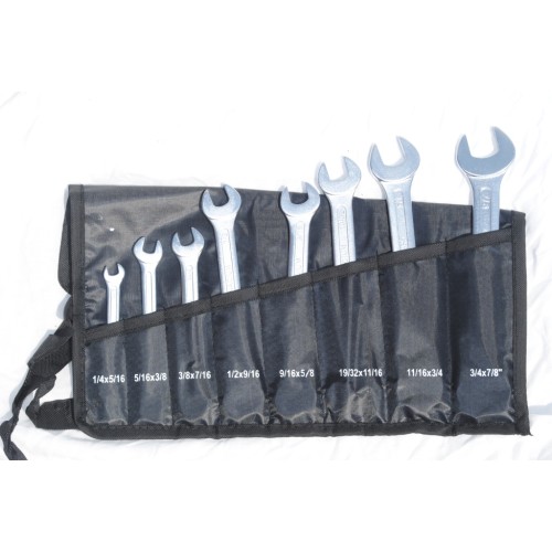 Deze 8 delige steek sleutel set is gemaakt van chrome vanadium. De set bevat Engelse maten (SAE) en zit in een opbergzak.