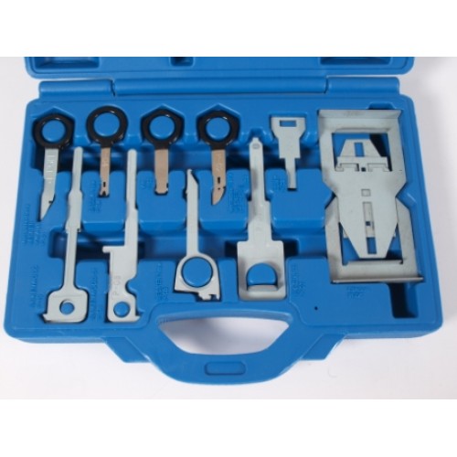 Complete set om diverse radio en navigatie systemen te demonteren uit een auto. Voor de volgende merken zit er materiaal in om de radio of navigatie te demonteren: Audi, Mercedes, VW, Becker, Porsche, Skoda, Clarion, Kenwood, Sony, Fiat, BMW, Opel, Blaupunkt, Grundig en Ford