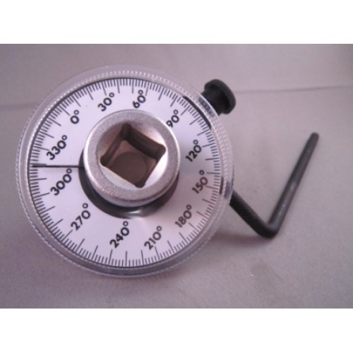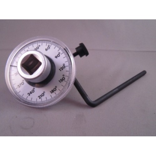 Gradentrekker gemaakt van chrome vanadium. De gradentrekker heeft een binnen en buiten aansluiting voor 1/2". Er zit een draaischijf op, zodat de graden van 0 tot 360 graden zijn in te stellen. Daarnaast zit er nog een winkelhaak aan en snel spanner.