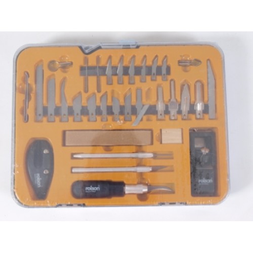 Deze 36 delige snijset bevat een groot aantal soorten mesjes en zaagjes. Zie meer afbeeldingen om een beschrijving van de inhoud te bekijken.