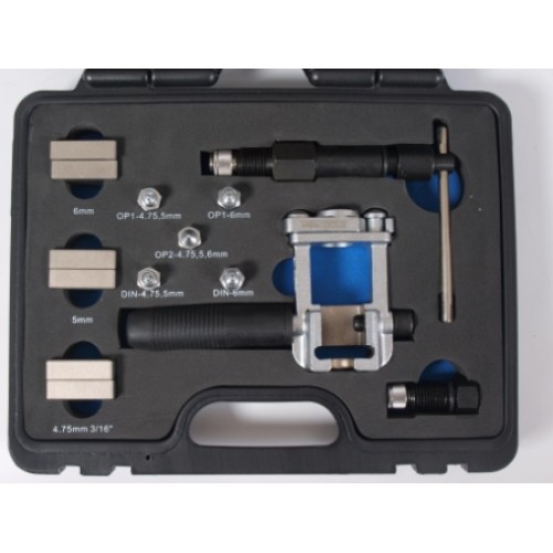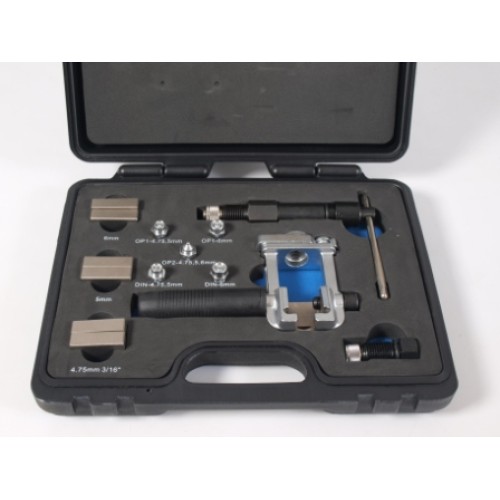 De volgende maten zitten in de set: 4,75 (3/16"), 5 en 6 mm. De volgende flares kunnen gezet worden: OP1-4.75 - 5mm OP1 - 6 mm OP2-4.75 - 5,6 mm DIN-4.75, 5 mm DIN-6 mm